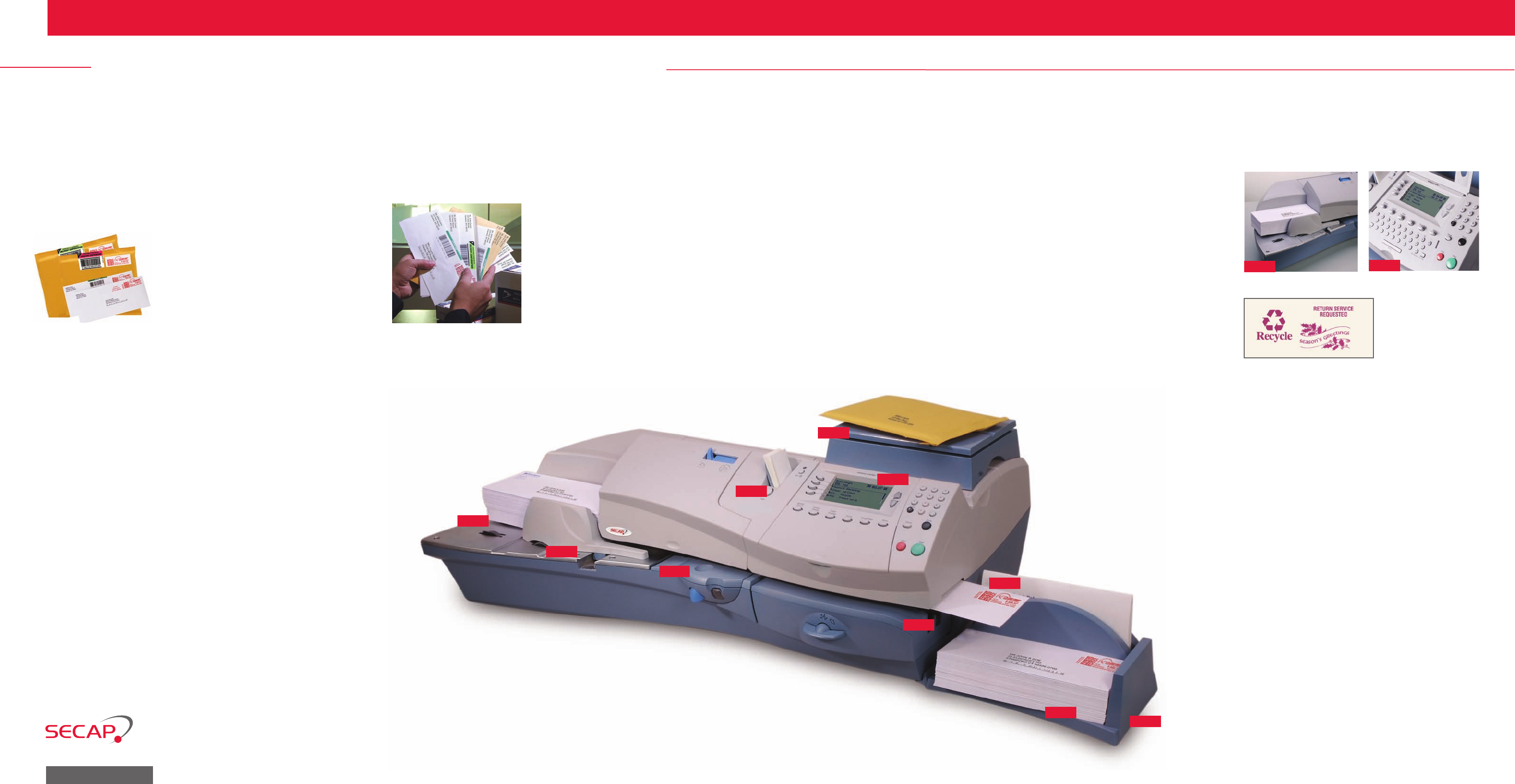 square, guarding against wasted postage. Wide feed deck handles